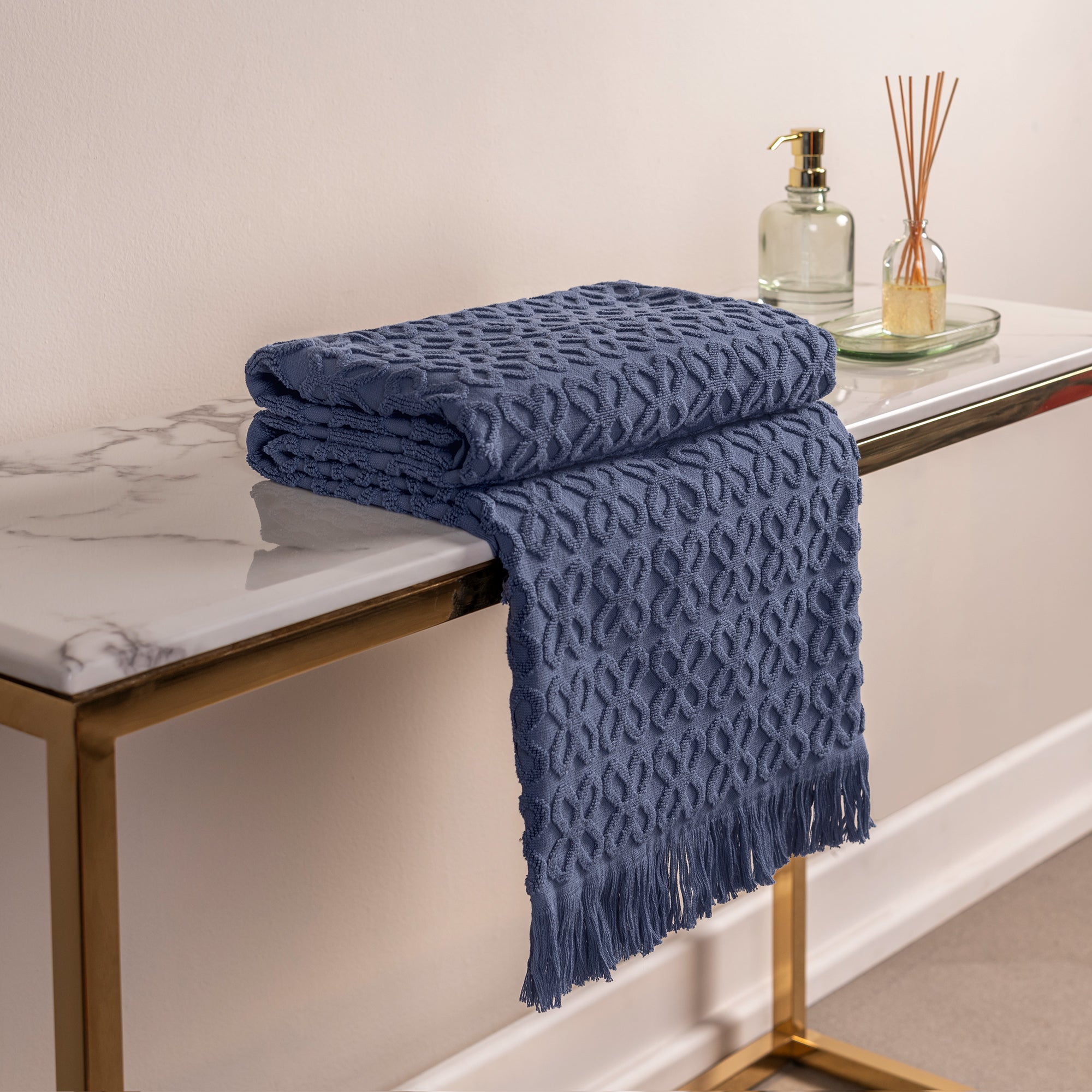 Convierte tu baño en un espacio acogedor y en tendencia con la Toalla Balandra Azul. Su color es ideal para hacer que luzca fresco y su tejido en relieve añadirá textura visual a la decoración. Toalla 100% algodón de calidad premium, con diseño jacquard ideal para decorar tu baño.