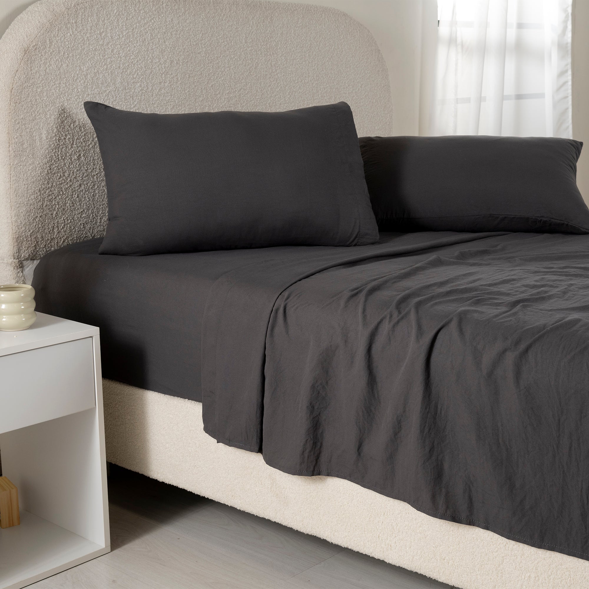 Sábanas Viasoft Washed Magnet, tejido suave y cómodo te garantiza un descanso placentero. Su tono neutro y elegante se adapta perfectamente a cualquier estilo de decoración, aportando un toque moderno tu dormitorio.