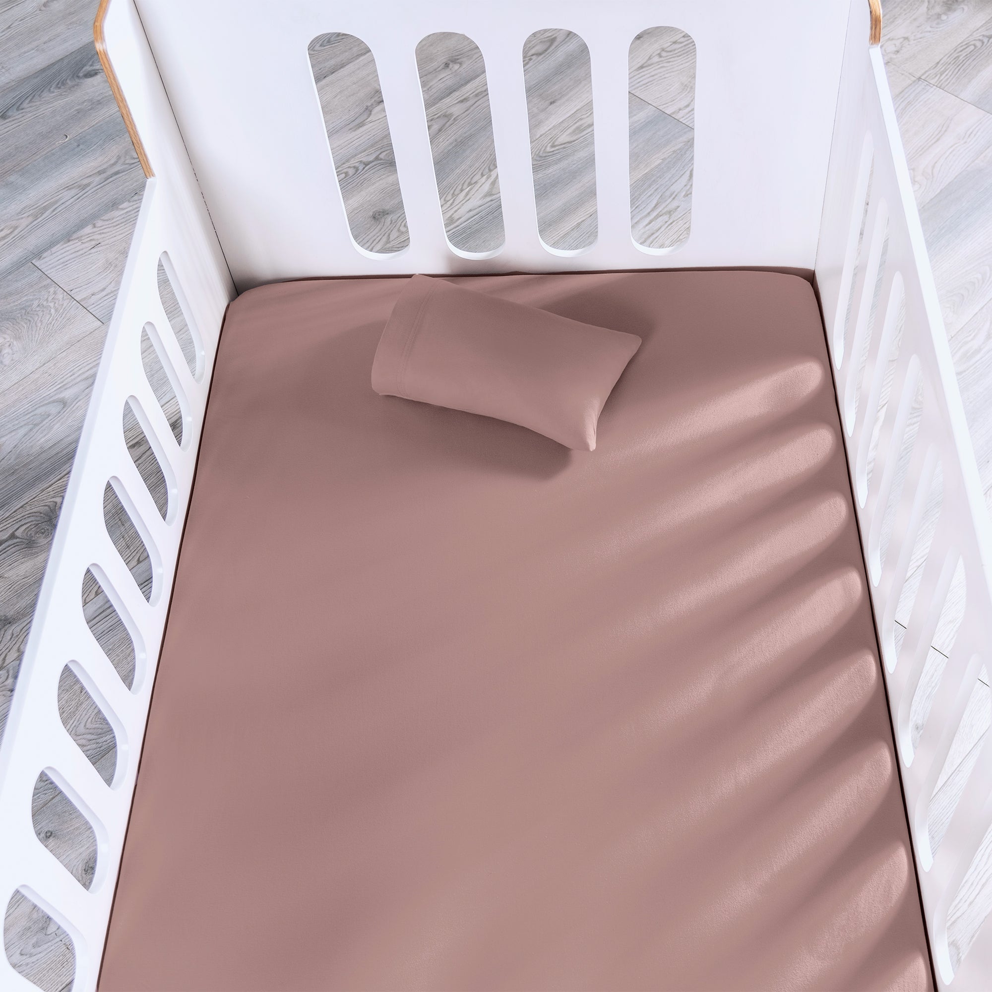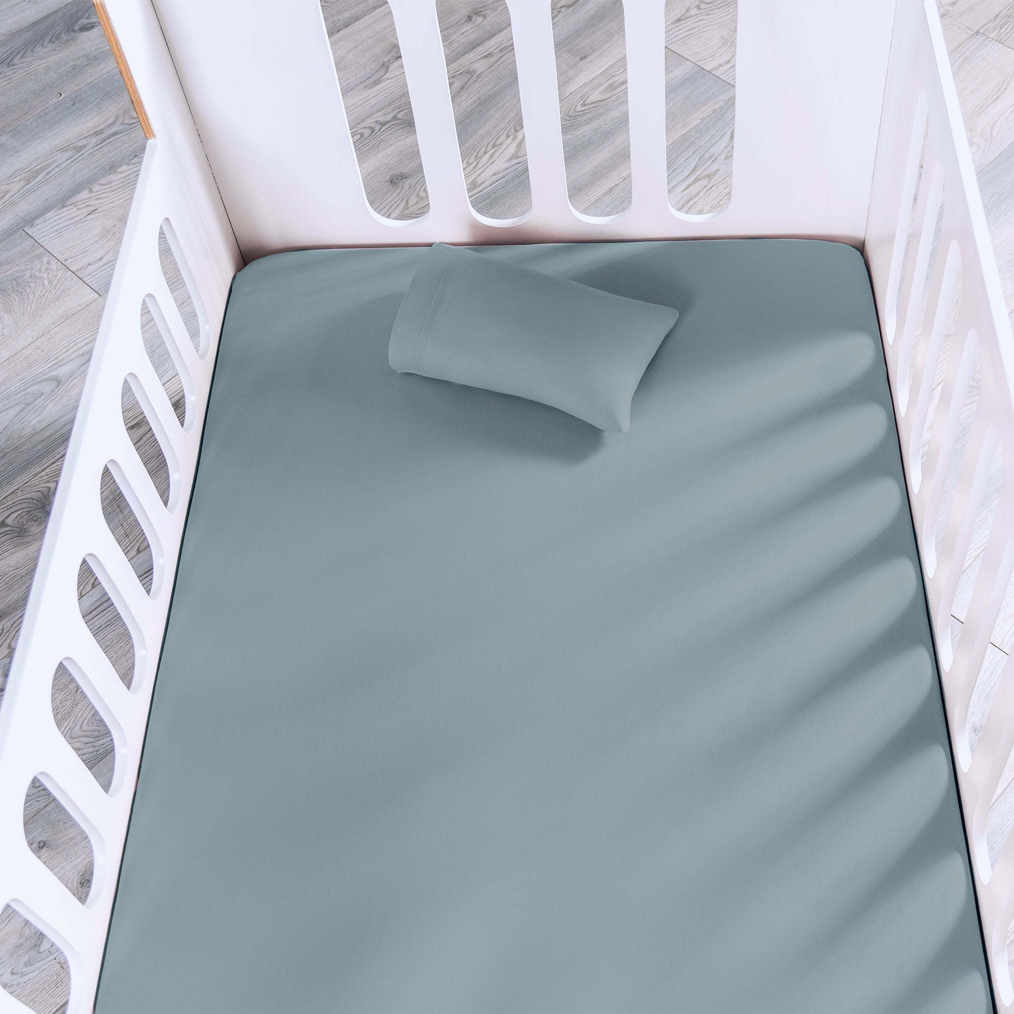 Color ideal para lograr un look delicado y tranquilo en la cuna de tu bebé. Combínalo con gamas de azul, gris o kaki. Sábana de cuna de camiseta, incluye funda de almohada. Ideal para la piel de tu bebé.