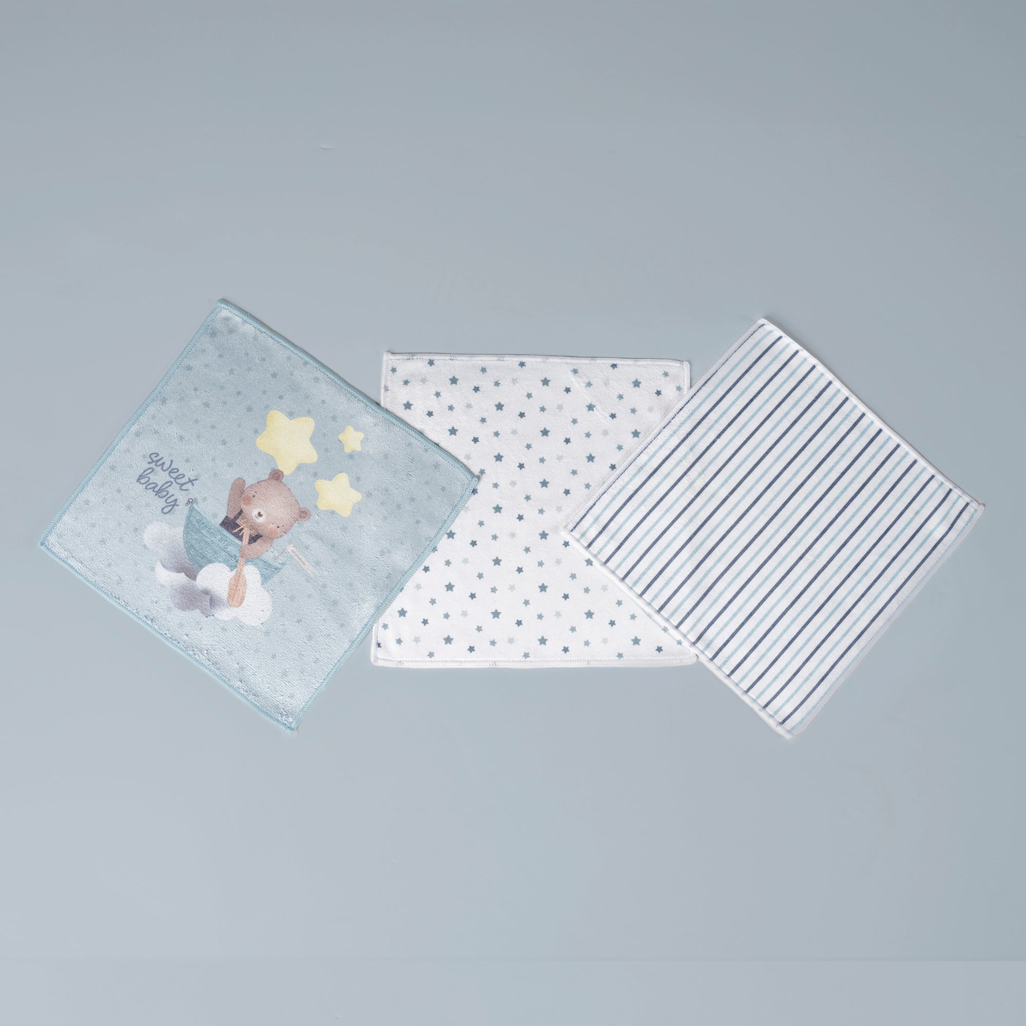 Juego de 3 toallitas faciales estampadas. Súper absorbentes, suaves al contacto con la piel de tu bebé. Ideales para llevar a todos lados.