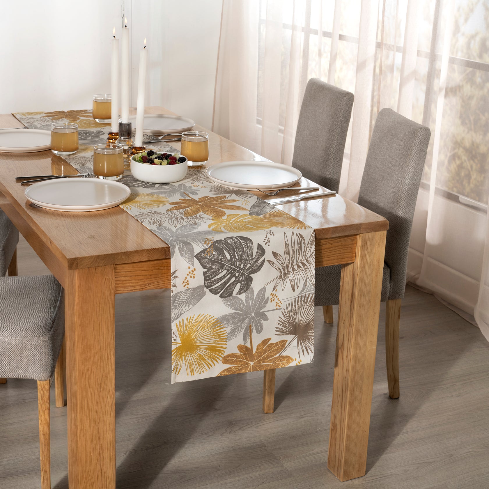 Dale un toque natural y acogedor a tus comidas con el Camino de Mesa Mumbai Olivo. Su tono verde en combinación con su textura de hojas en relieve transformarán tu comedor en tu punto de encuentro favorito. Camino de mesa de microfibra con textura jacquard, ideal para darle un toque decorativo a tu mesa.
