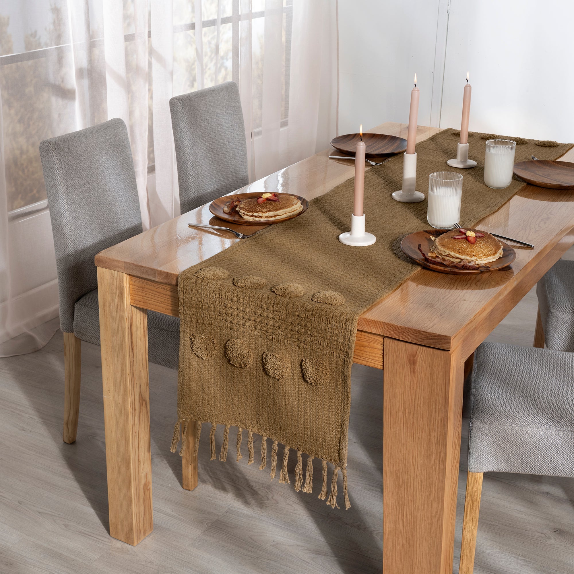 Camino de mesa con diseño tejido 100% algodón, ideal para darle un toque decorativo a tu mesa.