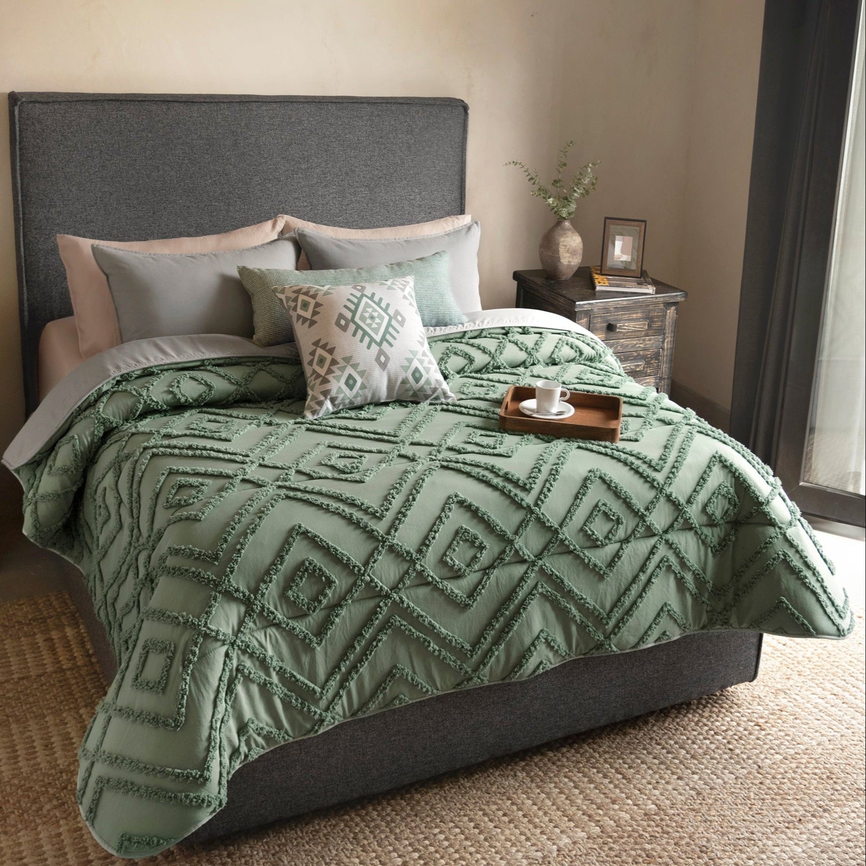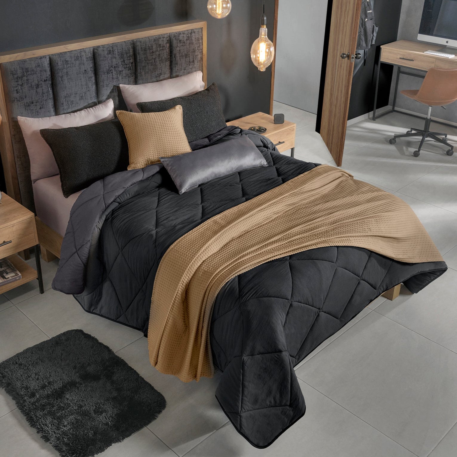 Crea en tu habitación un ambiente minimalista y urbano con increíbles texturas de waffle, bucle y velvet. Ideal para un descanso que se siente tan bien como se ve.