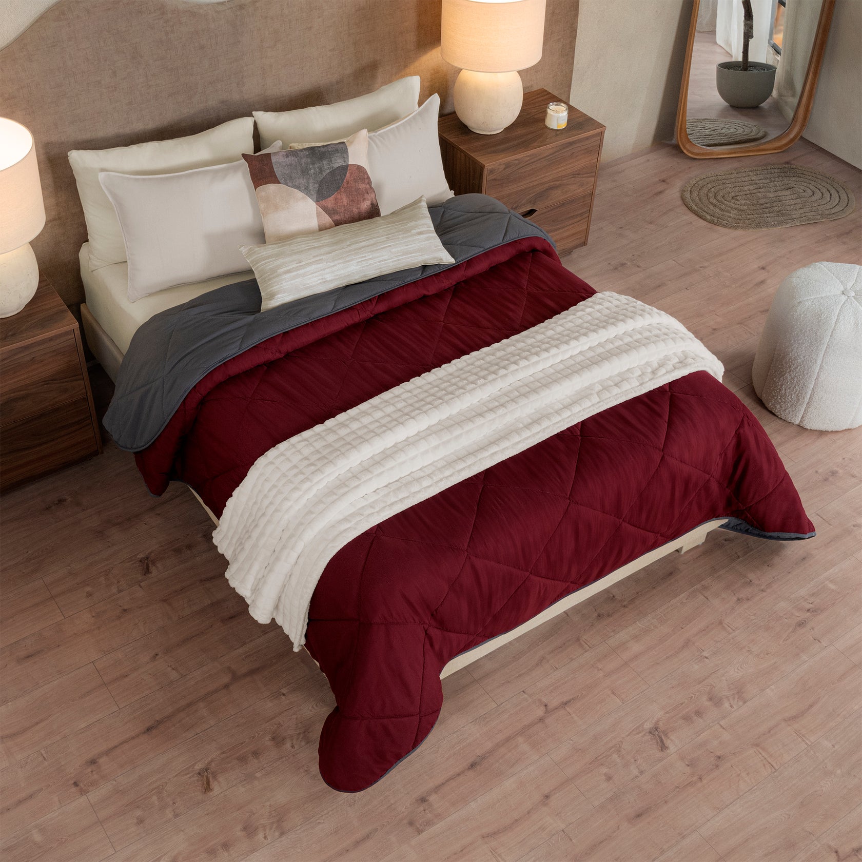Edredón doble vista ultradelgado con capitonado especial. Dos vistas lisas para mayor versatilidad. Muy ligero, fácil de guardar y lavar en casa. Al mejor precio.